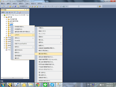 首先點選要複製的資料庫滑鼠右鍵後選工作→產生指令碼