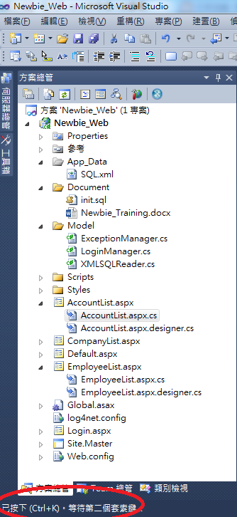 那麼你就要先按下Ctrl+K,此時畫面的左下角會顯示這個訊息